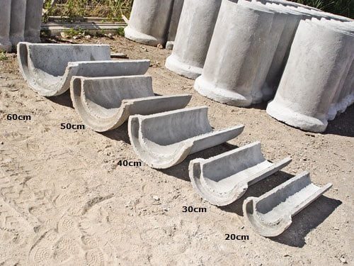 A meia-cana tem encaixe perfeito o que propicia escoamento do fluxo de água. É recomendado fazer uma cabeceira de concreto para a captação das águas,